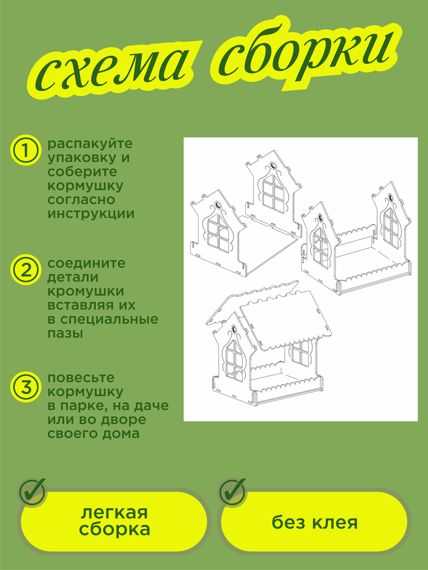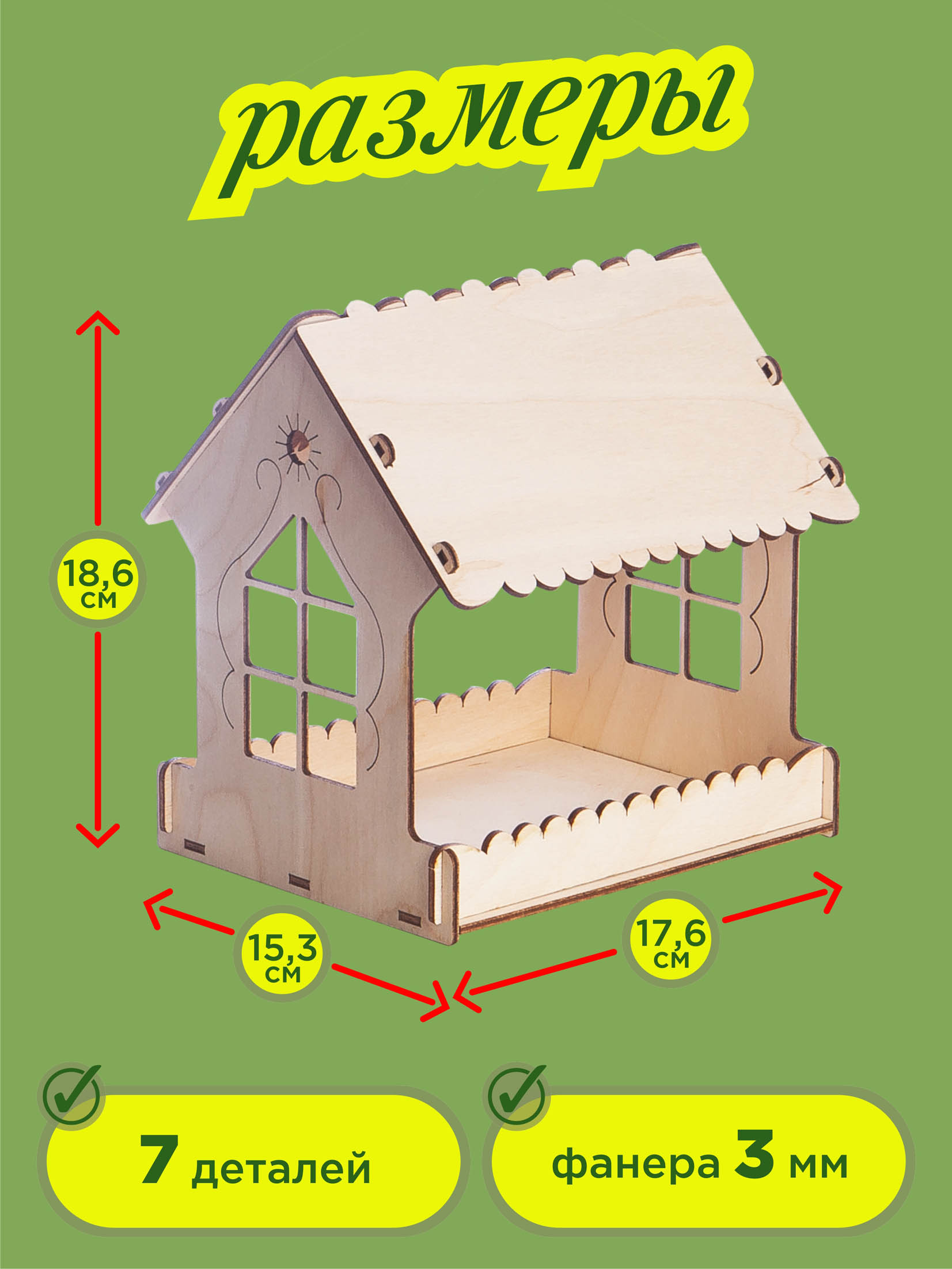 Подвесная кормушка для птиц изготовлена из экологически чистой древесины. Собирается без использования клея, детали вставляются в специальные пазы. Все детали кормушки тщательно отшлифованы на современном оборудовании, что исключает вероятность поймать "занозу". Соберите её всей семьей и проведите весело время!