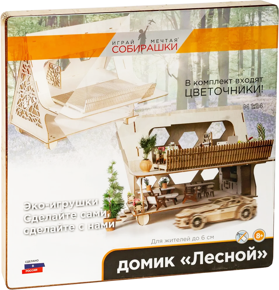 Домик Лесной выполнен из экологически чистой древесины, все детали хорошо отполированы, что исключает вероятность "поймать занозу".